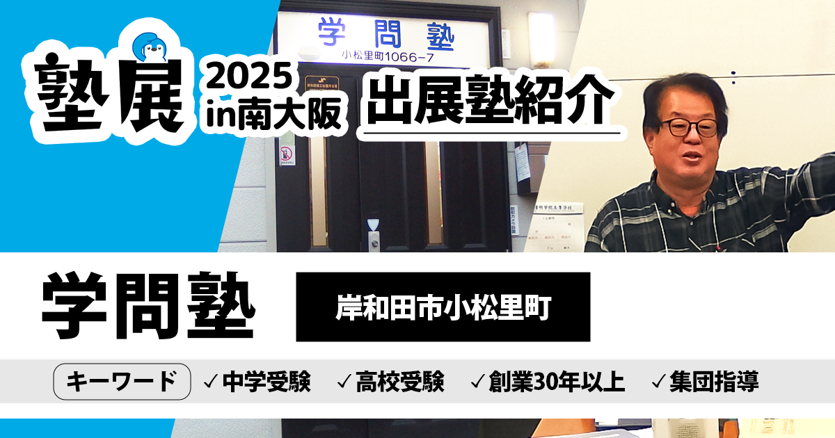 岸和田の「学問塾」は、地域の子どもたちに長年寄り添ってきた老舗の進学塾です。